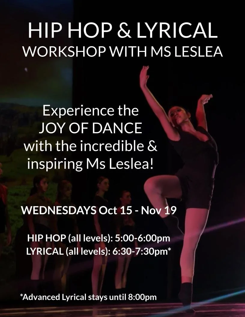 We are so excited to bring Ms Leslea back for an incredible and inspiring workshop this fall! Ms Leslea has had an amazing dancing and teaching career over many years, and we are so honored to have her join us again!
